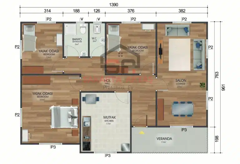 122 m² 3+1 Tek Katlı Prefabrik Ev: Geniş Aileler İçin Konforlu ve Şık Bir Seçenek