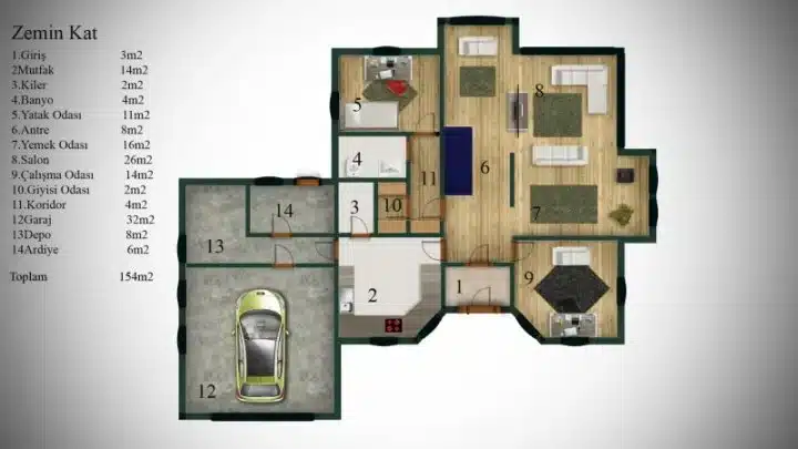 Geniş yaşam alanları ve modern tasarım